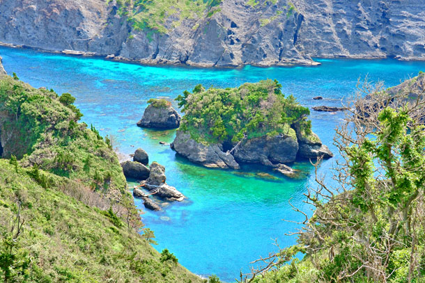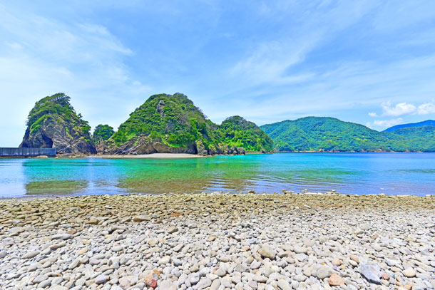 小さな浜辺で広くはありませんが、透明度抜群の海の水と秘境感漂うロケーションが魅力的な海水浴場です。